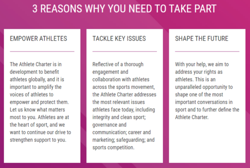 More information about The Athletes Charter and the survey is found here: