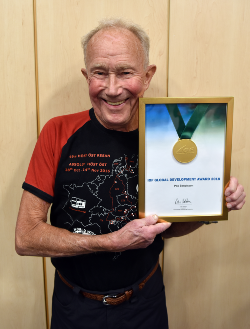 In connection to the Global Development Conference held in Praha, Czech Republic, Peo Bengtsson was awarded by the IOF for his life long work with developing orienteering around the world.