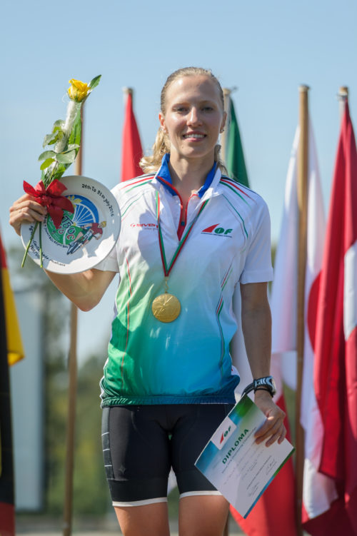 Olga Vinogradova-Shipilova from Russia wearing the World Champion jersey. In July she won the Middle Distance at the World MTBO Championships in Portugal. Photo: Donatas Lazauskas